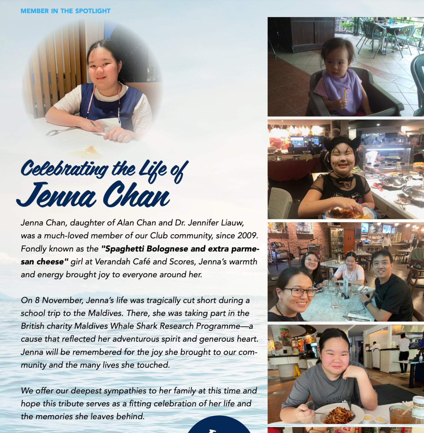 We are the family of Jenna Chan, a bright, compassionate, and talented 15-year-old girl who tragically lost her life on 8 November 2024, during a school-organized expedition to the Maldives. Jenna was our daughter, sister, and joy—a child full of promise who deserved safety, care, and a future. She was taken from us far too soon.